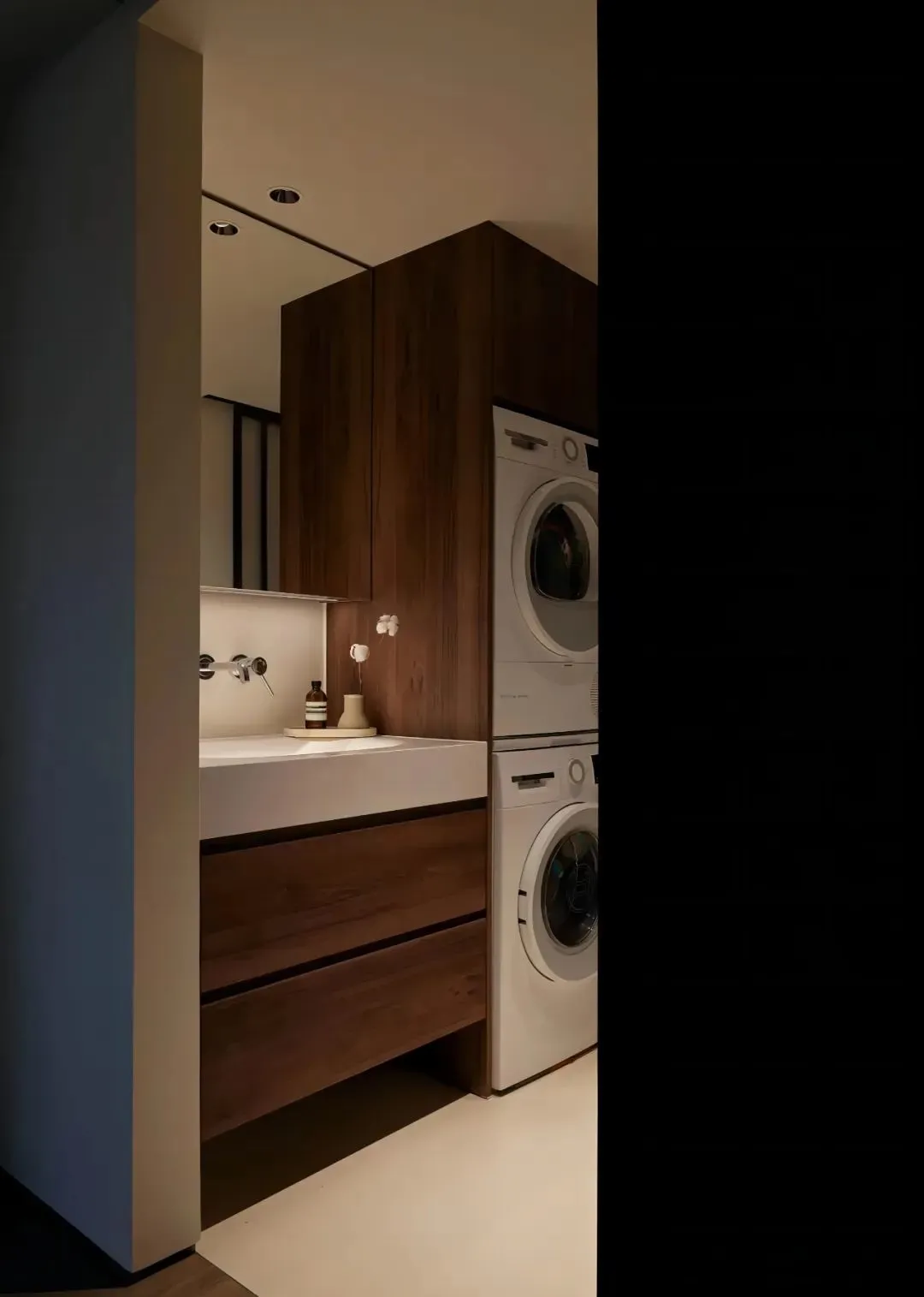 Remove part of the space in the second bedroom, expand the area of the washing space, and install a sink and a washing and drying set.