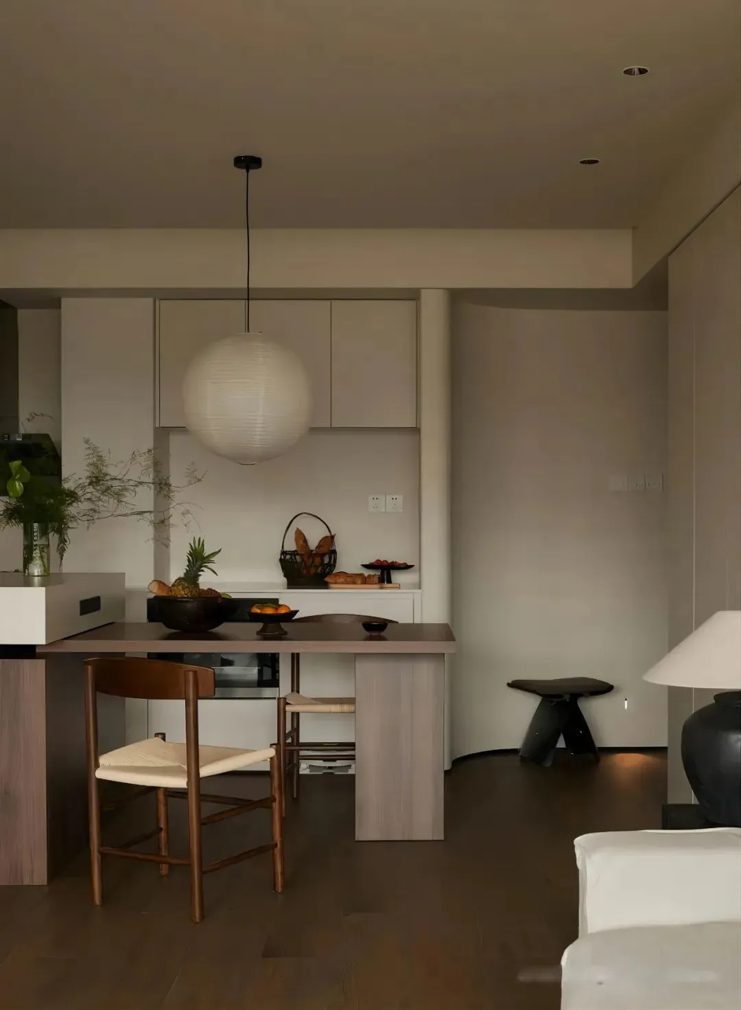 91 ㎡ medieval style, the dining island is integrated and retractable, and you can feel the home atmosphere of light and shadow aesthetics