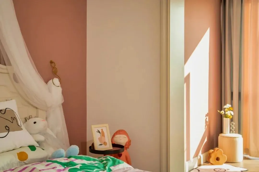 The second bedroom is my daughter’s room, and the gauze curtain of the princess castle is commensurate with the dazzling rose red color, all of which are full of innocence and interest.