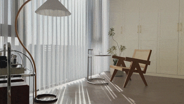 The floor-to-ceiling glass surface with a full view of the balcony, the traces of time rising from east to west, at every moment of time, light and shadow are intertwined into a painting, and an unspeakable beauty slowly spreads out.