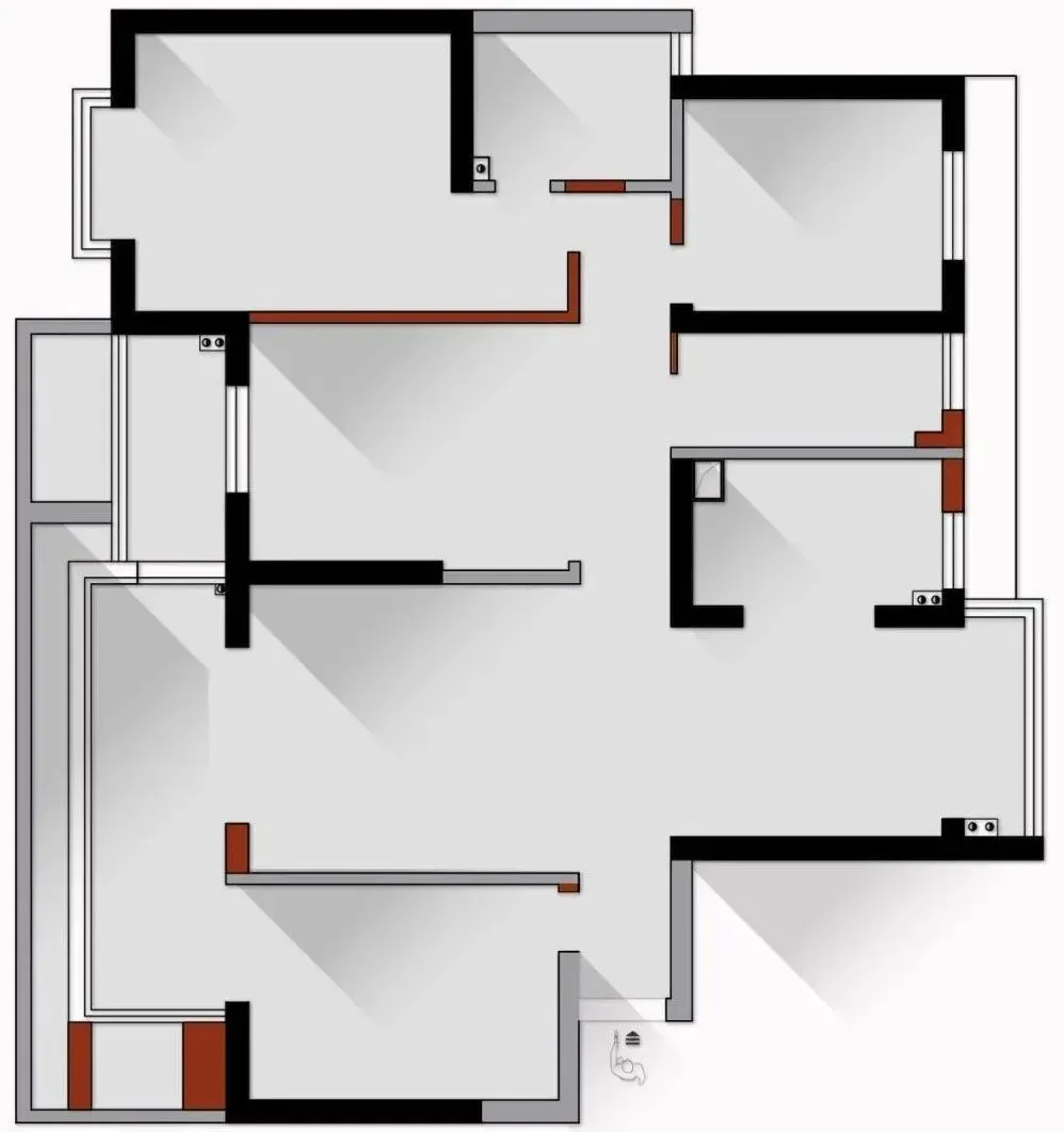 The completely open space is merged into the living room, giving enough openness to the home and life; The beams that cannot be removed are combined with suspended ceilings and embedded lighting lines to increase lightness, while the walls that cannot be removed are hidden in the cabinets, which also gives more volume to future life.