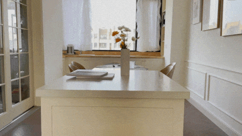 On the other side of the balcony is a multi-functional study room. The desk is placed in the form of activities, and the usage scenes are richer. The whole space is warm and lazy under the warm sun.