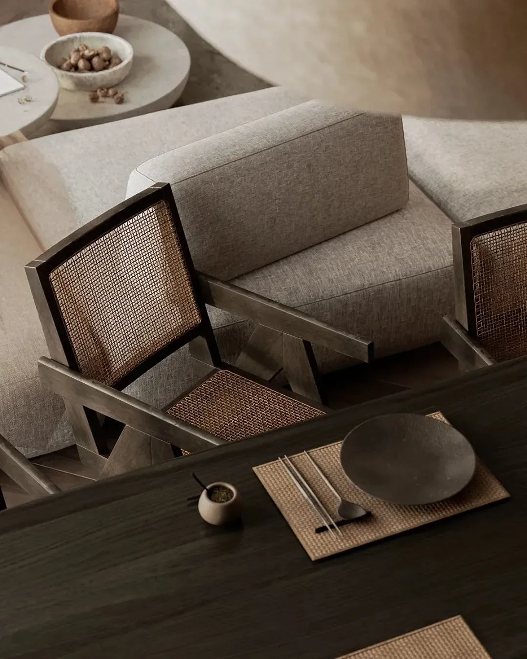 “Wabi-sabi wind” is dominated by natural colors, mostly with natural unique high-grade gray tones, flax, stone cyan and sandalwood. Earth color is commonly used as the basic color, and beige and high-grade gray are also commonly used tones.