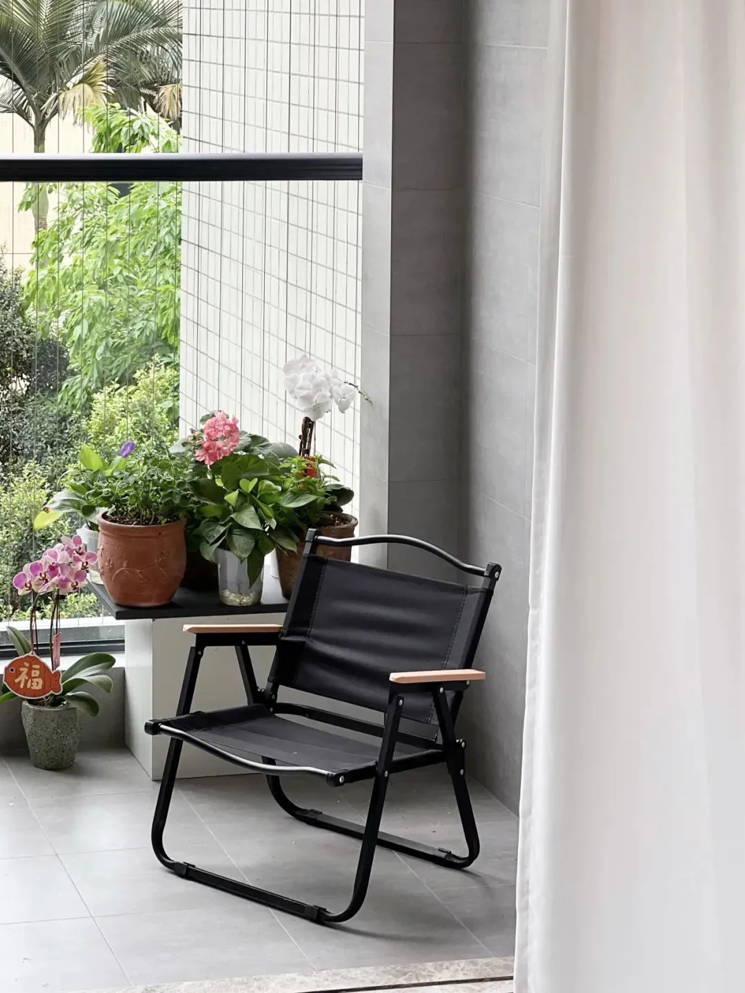 There is also an outdoor folding leisure chair of the same color in the corner, which echoes the sofa in the distance. When it is idle, fold it up and won’t take up space.