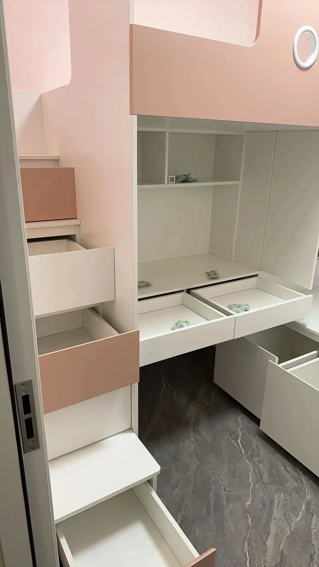 The design of children’s room is the mainstream form that integrates high and low beds, desks and learning areas, and the space planning is in place. In appearance, it has complete functions, and tatami mats meet the storage function. The dreamy pink dream space is as soft as clouds, giving people a dreamy and soft feeling. Princess Fan is full ~
