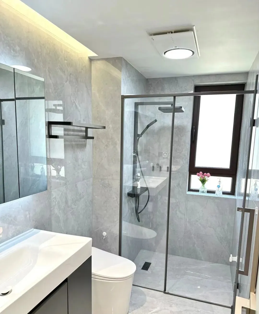 The bathroom occupies an important position in our home life. It is an indispensable functional area in daily life. The design and planning of wet and dry separation improves the convenience of daily use. The whole is transparent and bright, indirectly enlarging the visual space ~
