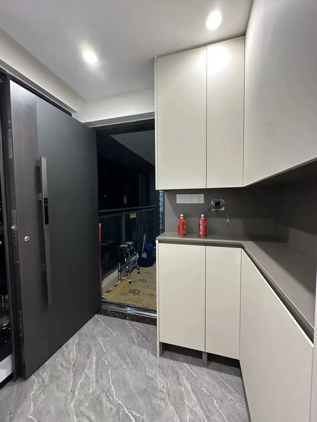 The owner keeps the original balcony, the idea of unsealed balcony, the segmented storage cabinet design, the embedded washing machine, daily life drying and green plant maintenance are not a problem at all ~