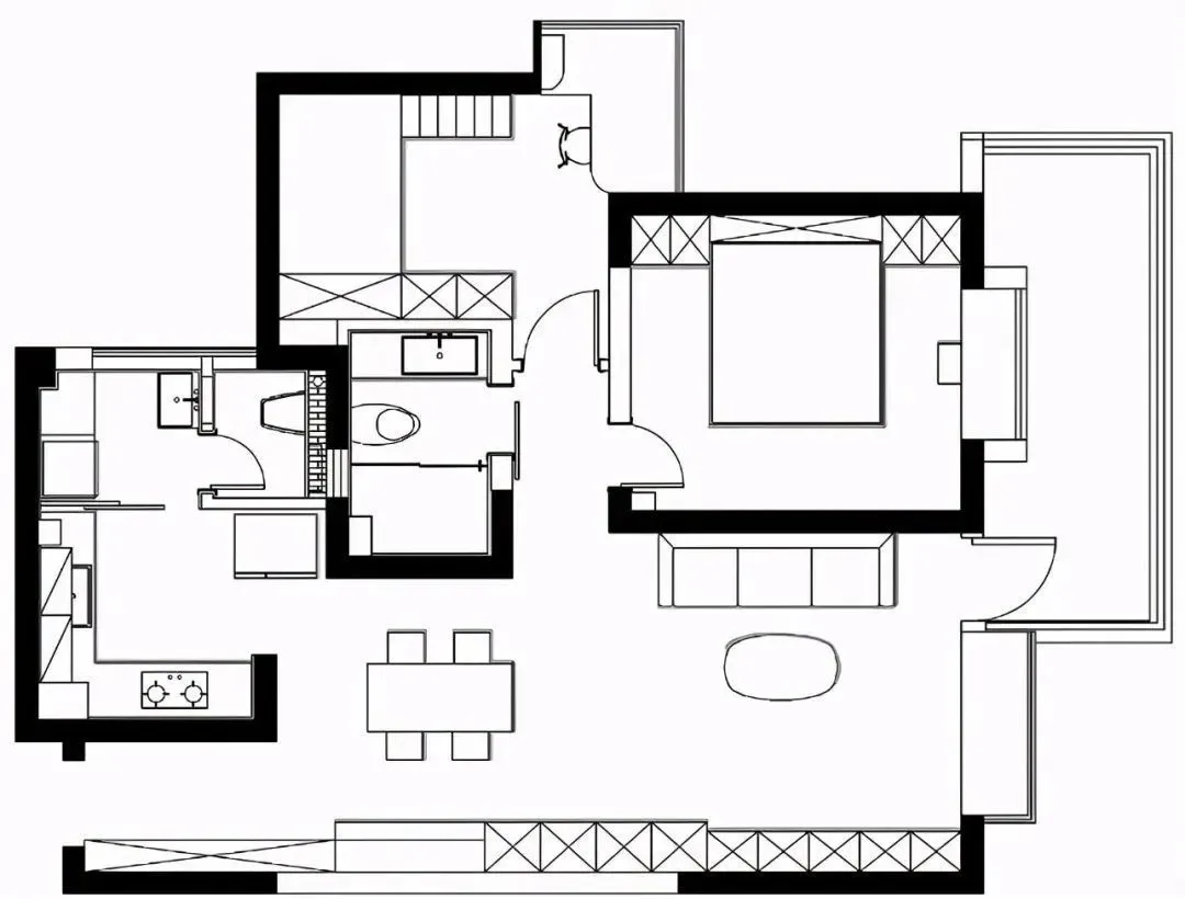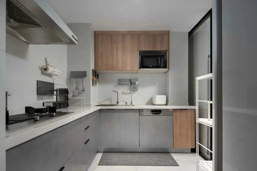 In the kitchen, remove the inner partition wall and make an open design to make the space more transparent and bright. Made intoL-shaped kitchen, the space utilization rate is higher, and the use is more in line with the cooking line.