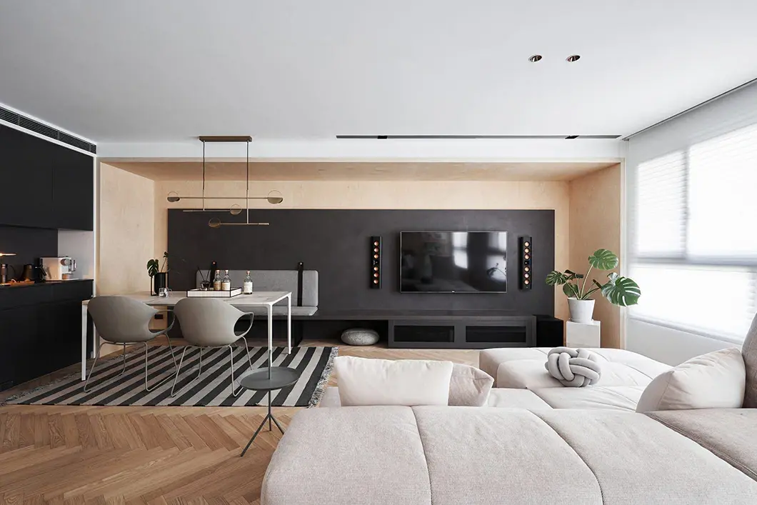 The reason why Nordic style color matching is visually comfortable lies in the use of neutral colors for soft transition. Even if black, white and gray are used to create a strong effect, there are always elements with stable space to break its sense of visual expansion, such as plain furniture or neutral color. Soft furniture to suppress.
