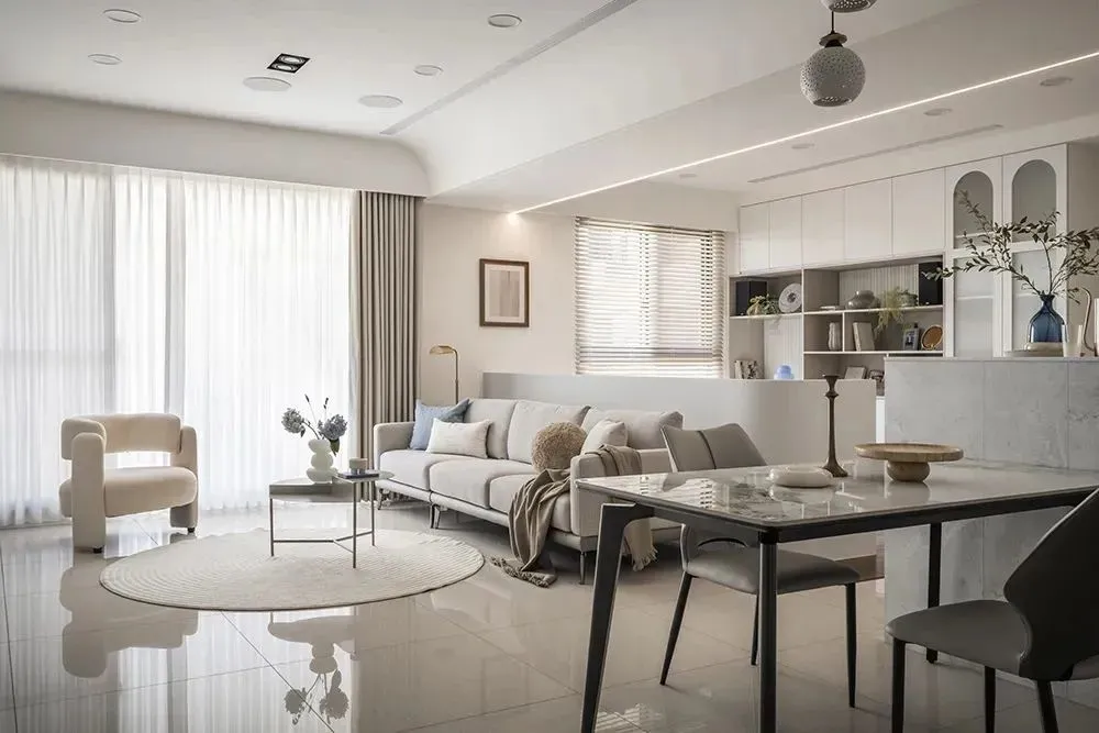 The common practice is that the color and texture of the cabinet door wainscoting in the living room must be consistent to form a unified surface. The color of dining table, dining chair and coffee table can be slightly darker than that of cabinet, but the color must be uniform. A clean texture should be selected, and rough and messy texture should be avoided as much as possible. It is best to choose light color and clear texture for the floor, and the carpet is also essential.