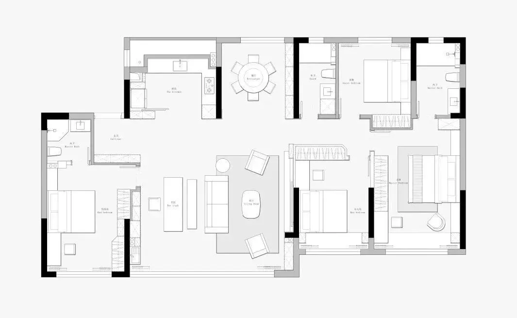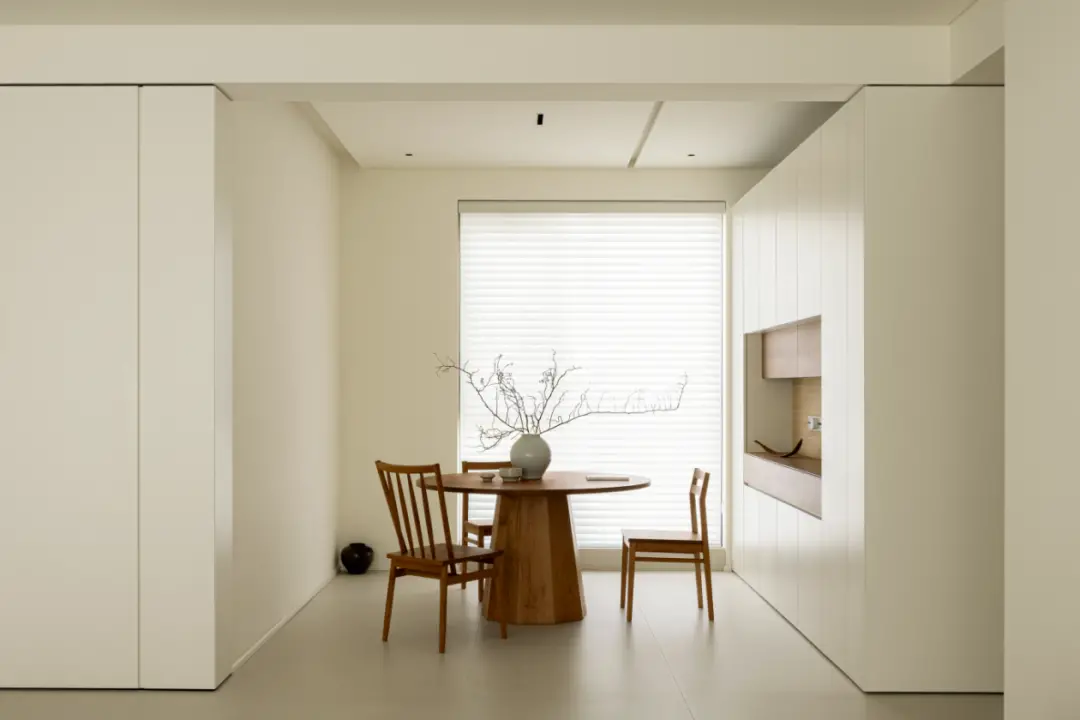 This case explores a set of160 ㎡ white minimalist four-bedroom apartment, through the ingenious spatial layout and the integration of log elements, showing a modern and warm home environment. Each space is carefully designed, embodying the core concept of minimalist style: removing complexity and simplifying, and pursuing the unity of function and aesthetic feeling.