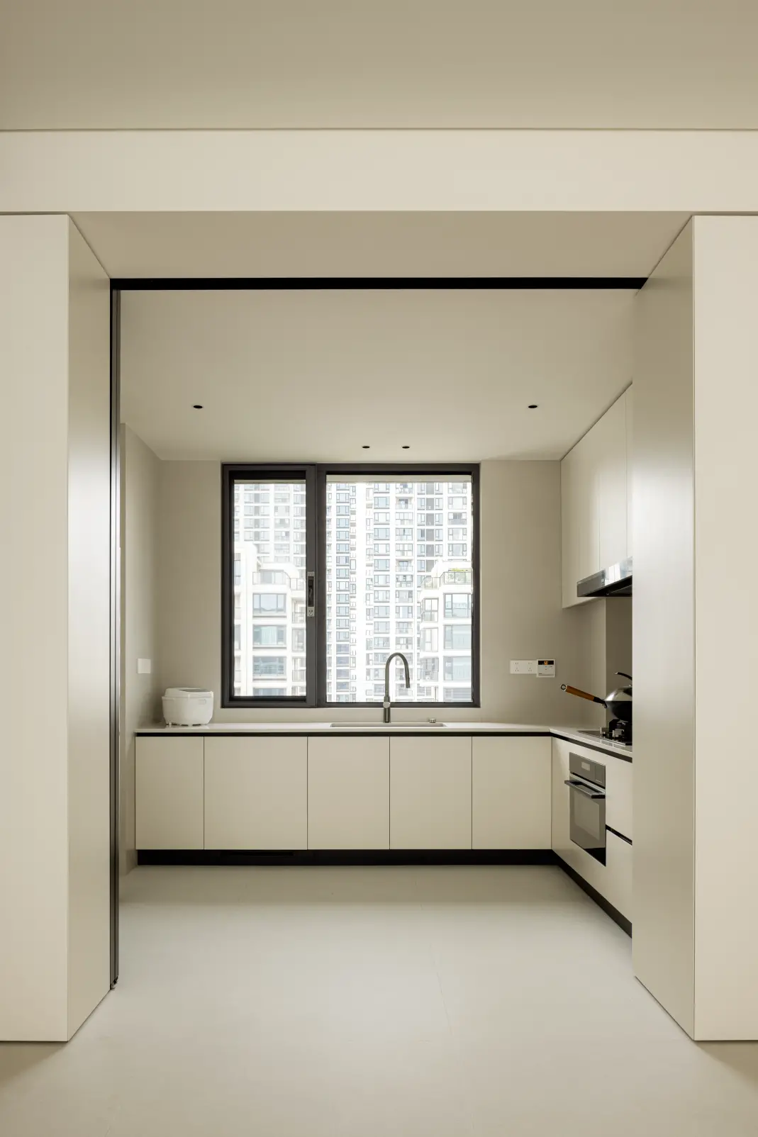④ Semi-open design of kitchen, with pocket door partition, which can be opened and closed; Higher space utilization.